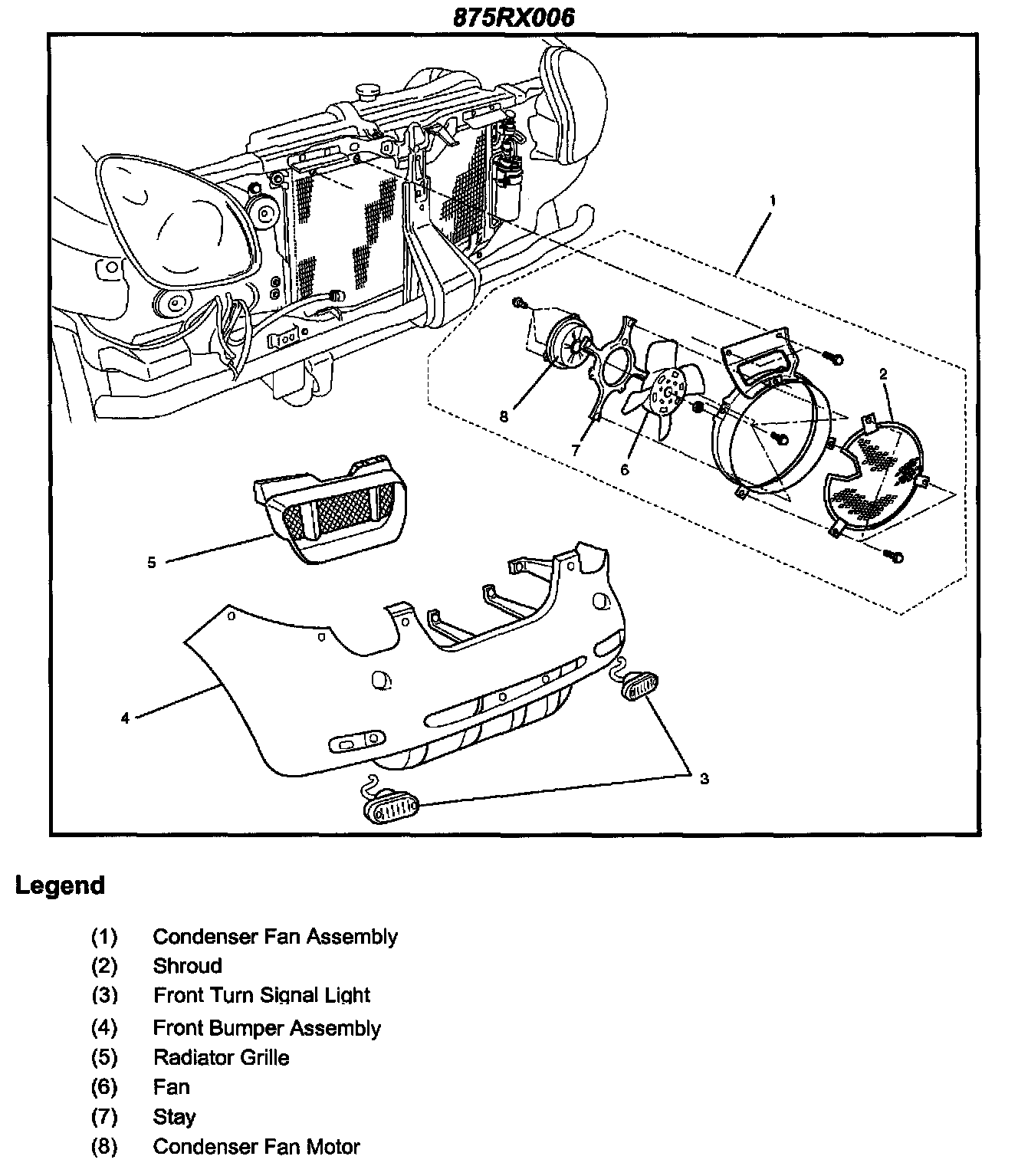 - Loosen the condenser fixing nut and disconnect the fan motor connector form bracket.