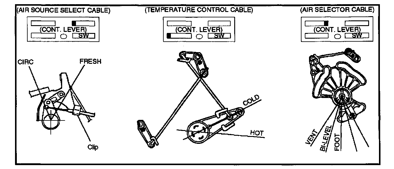 2. Connect the control cable at the "CIRC" position of the link unit of the blower assembly and secure it with the clip.