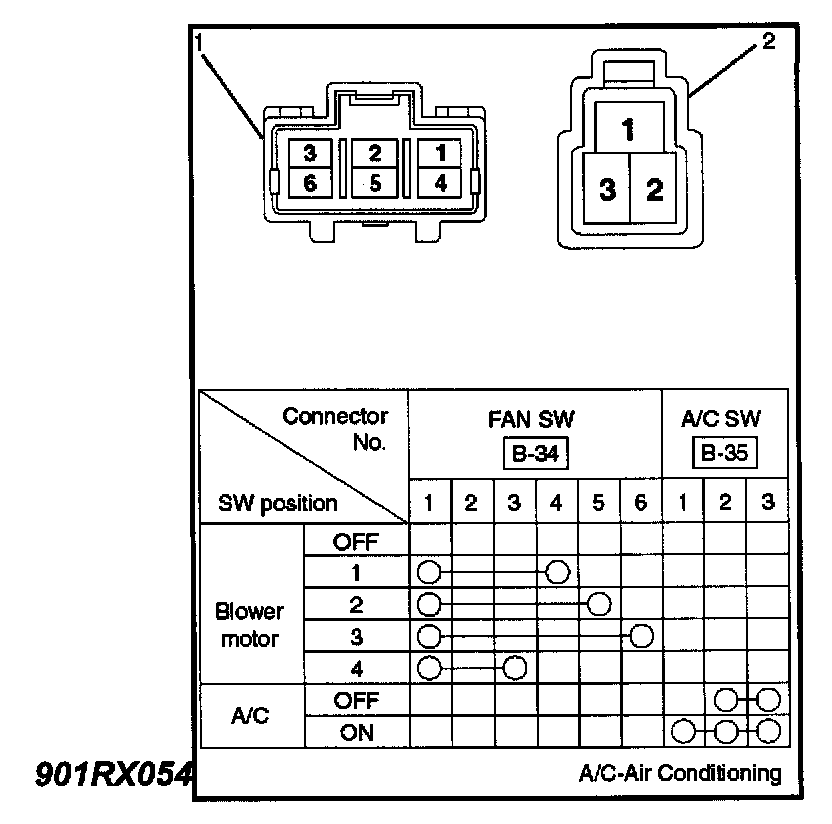 Check for continuity between terminals of the fan switch (1) and