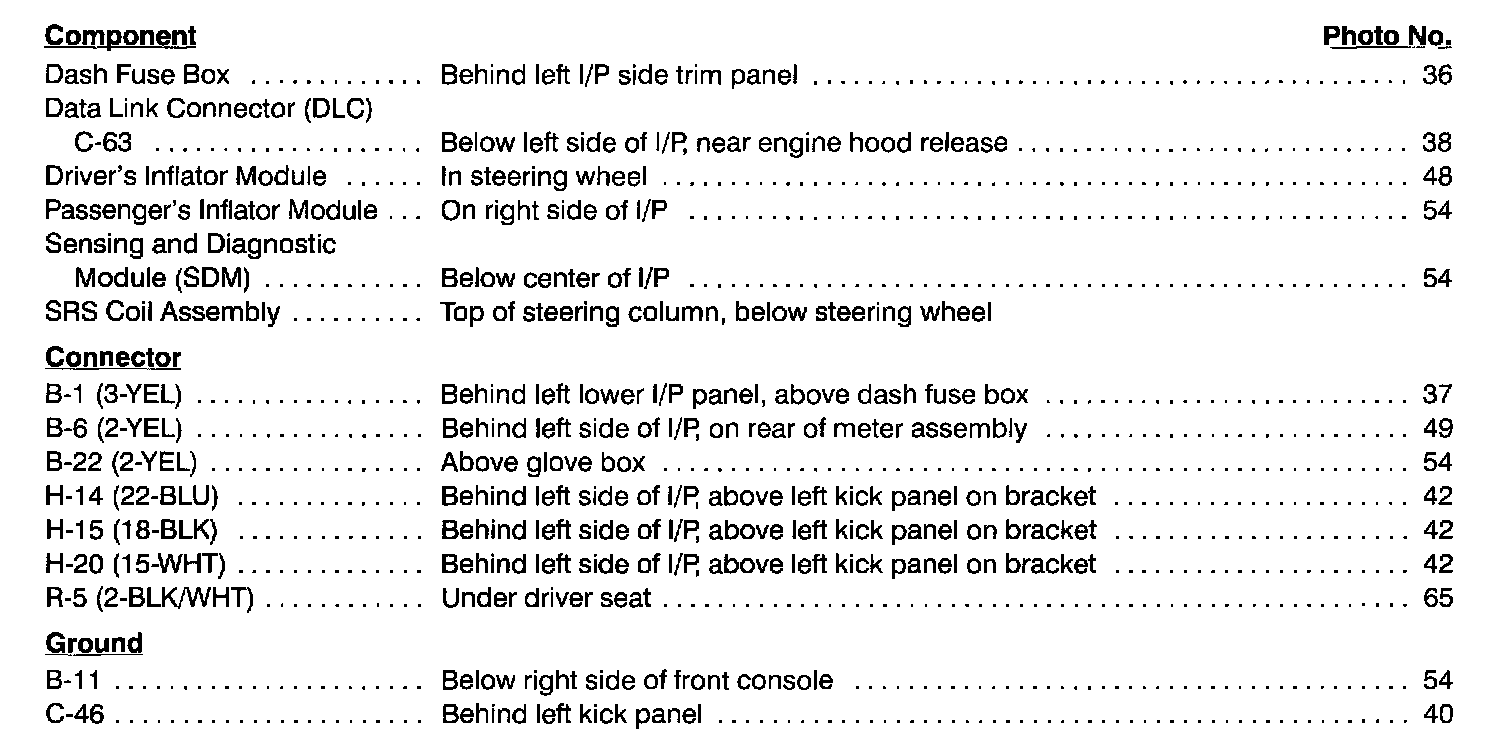 Supplemental Restraint System Index: