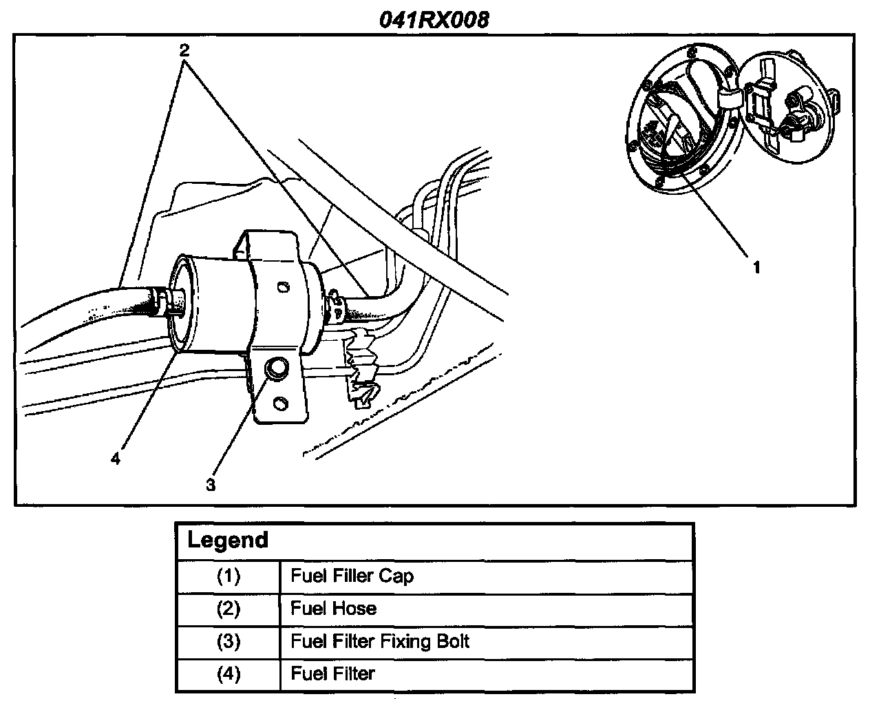 4. Disconnect the fuel line from the fuel filter on the fuel tank side.