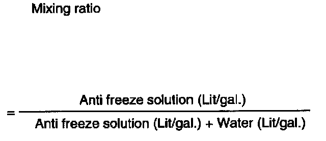 Note: Antifreeze solution + Water = Total cooling system capacity.