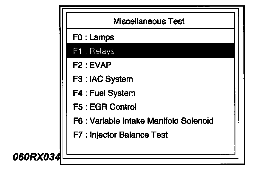 4. Select F1: Relay Test in the Miscellaneous Test.
