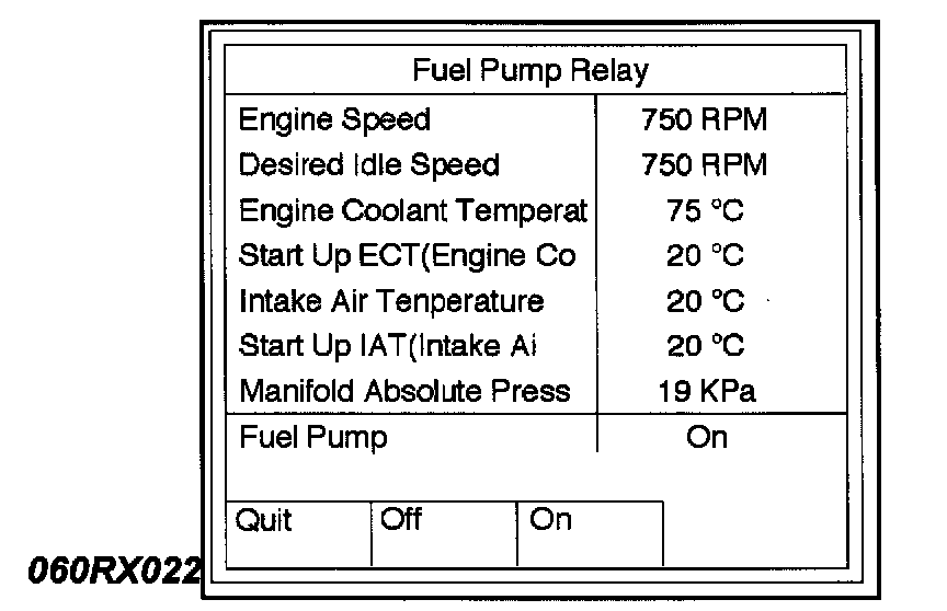 This test is conducted to check Fuel Pump Relay and A/C Clutch for proper operation.Tech 2 must be used for this test.