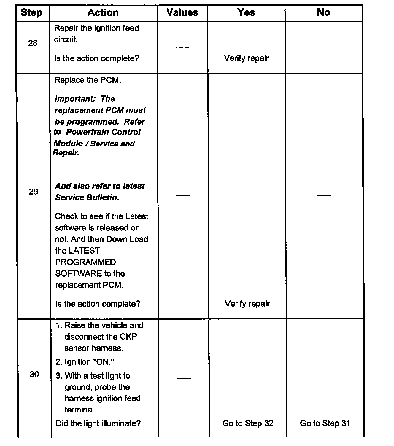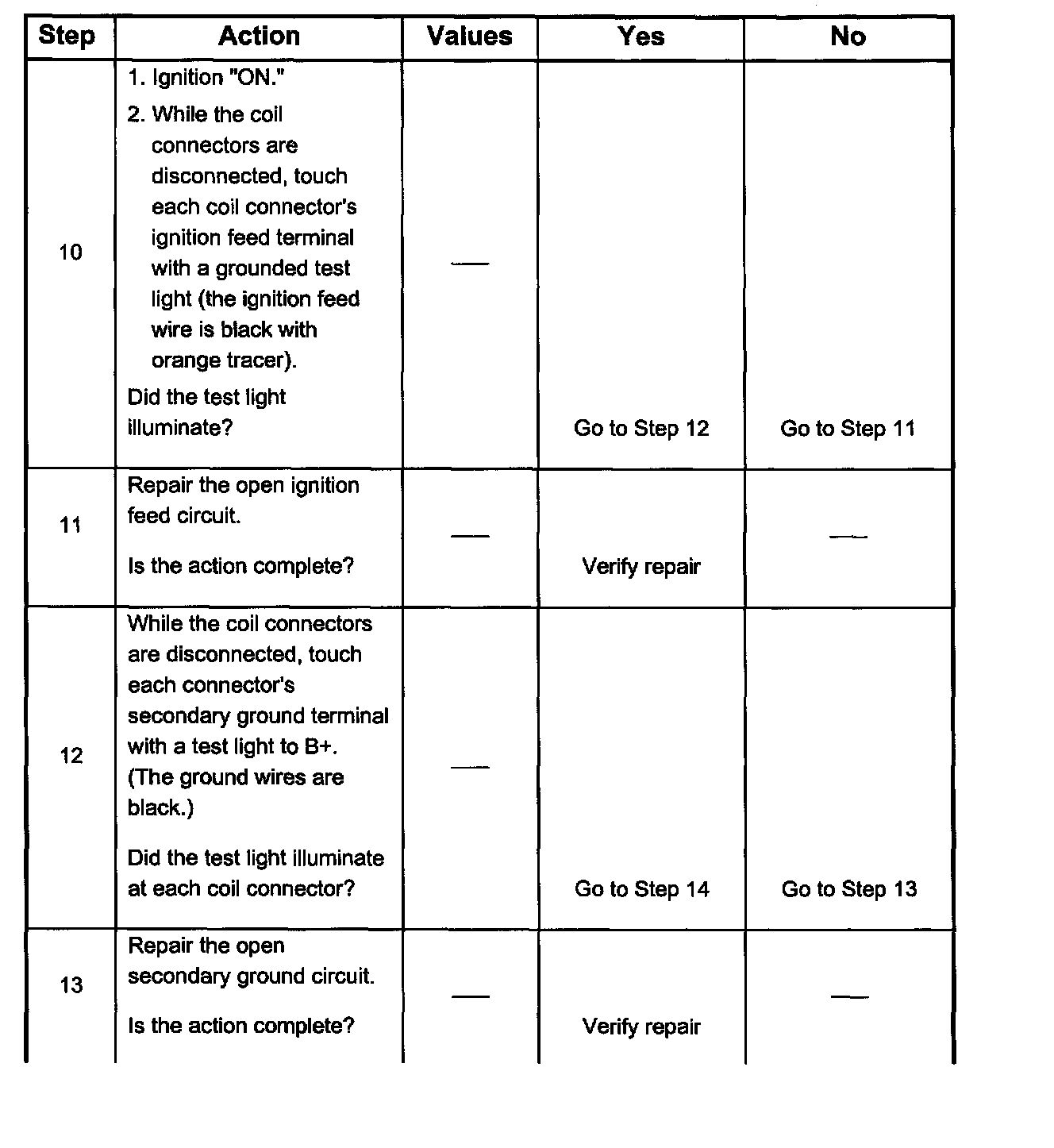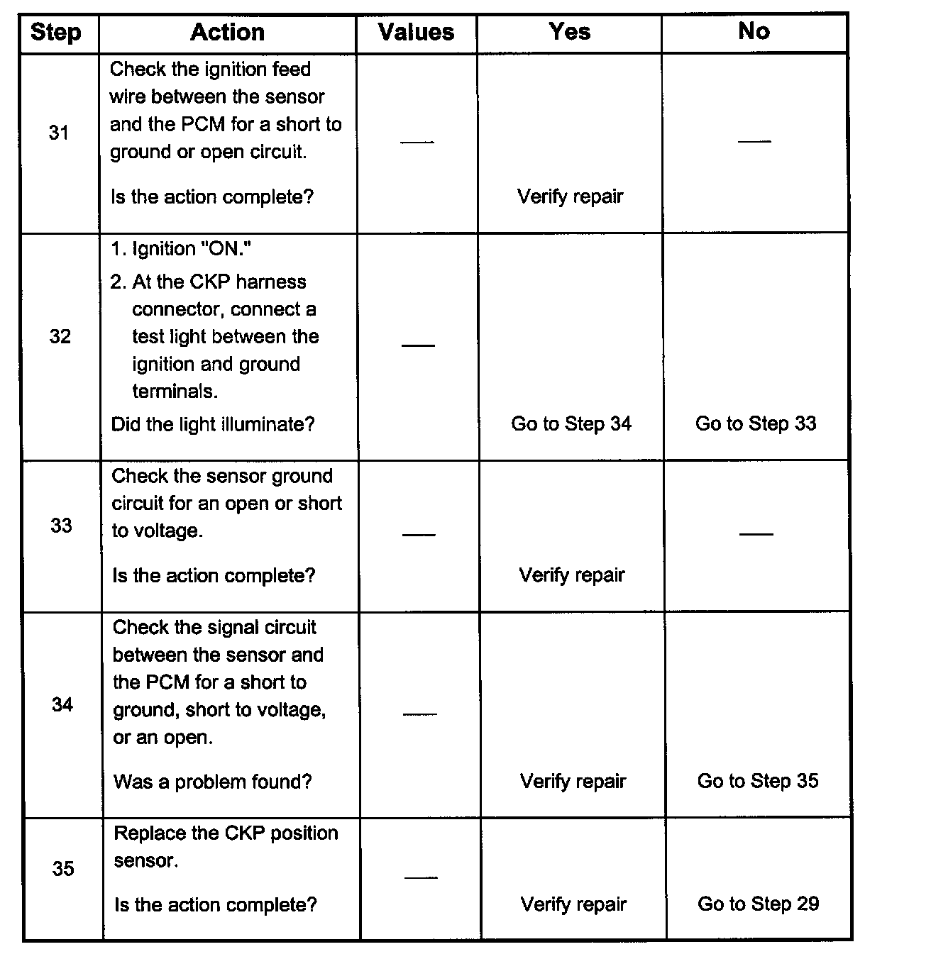 7. A blinking test light verifies that the PCM is monitoring the 58X crankshaft reference signal and is capable of activating the injectors. If there is an open or shorted driver circuit, DTCs 201 to 206 and a misfire DTCs 301 to 306 should be set.
