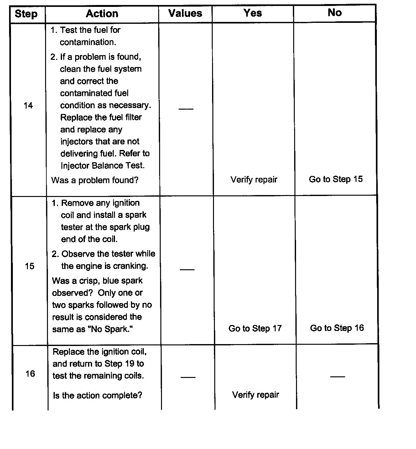 6. The engine will easily start and run if a few injectors are disabled. It is not necessary to test all injectors at this time since this step is only a test to verify that all of the injectors have not been disabled by fuel contamination.