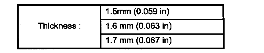 Thickness: 1.75 - 1.85 mm (0.069 - 0.073 inch)