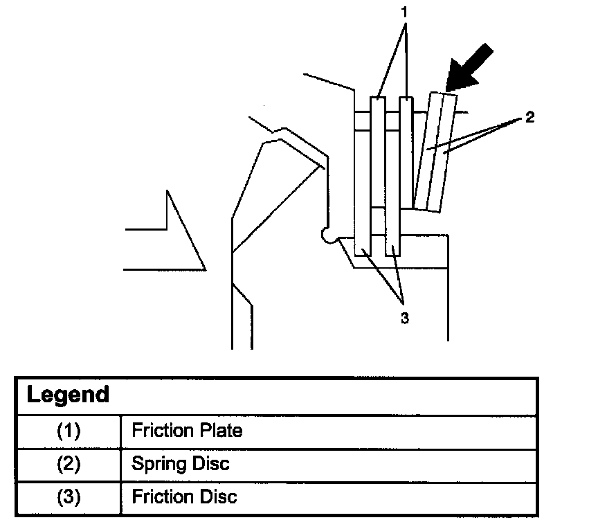 Also, the total size difference of the friction disc & plate and spring disc should be 0.05 mm (0.02 inch) or less.