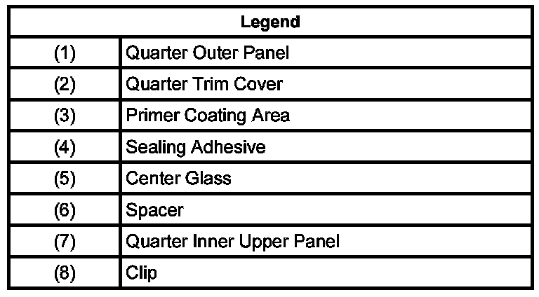 3. Apply primer (sun star #435 - 40 or equivalent) to the center glass side bonding surface as shown in the figure.
