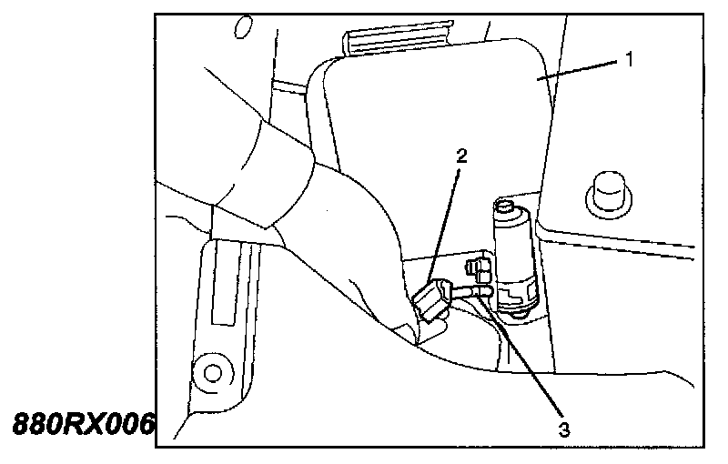 - Disconnect the washer motor connector (2).