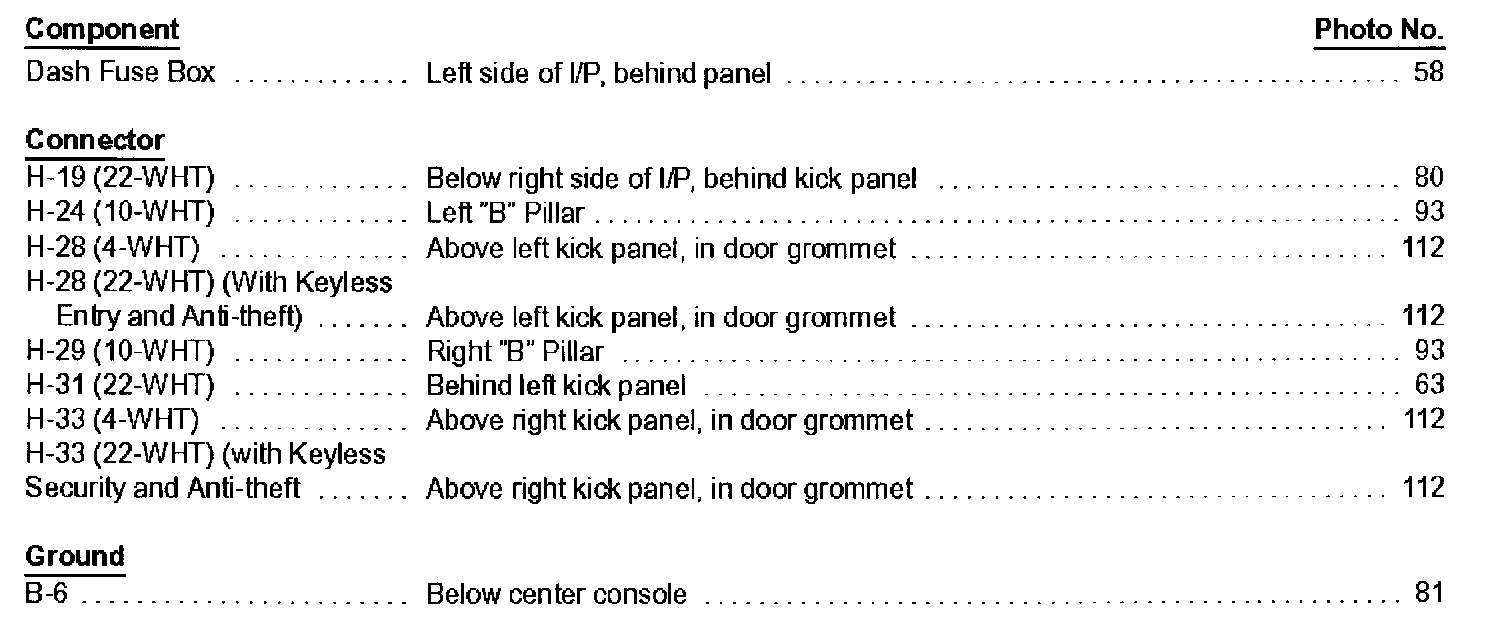 Keyless Entry And Anti-Theft System Index (Part 2):
