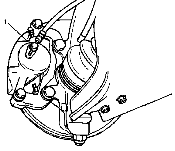 3. Remove the bolt and gaskets, then disconnect the flexible hose from the caliper and after disconnecting the flexible hose (1), cap or tape the openings to prevent entry of foreign material.