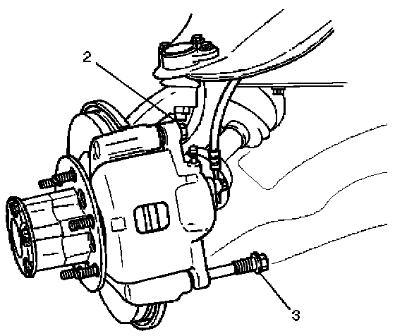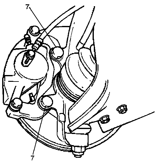 8. Remove support bracket with pad assembly and take care not to damage the flexible brake hose when removing the support bracket.
