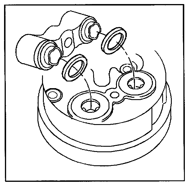 2. Install the sealing washer onto the pilots of the suction/discharge fitting.