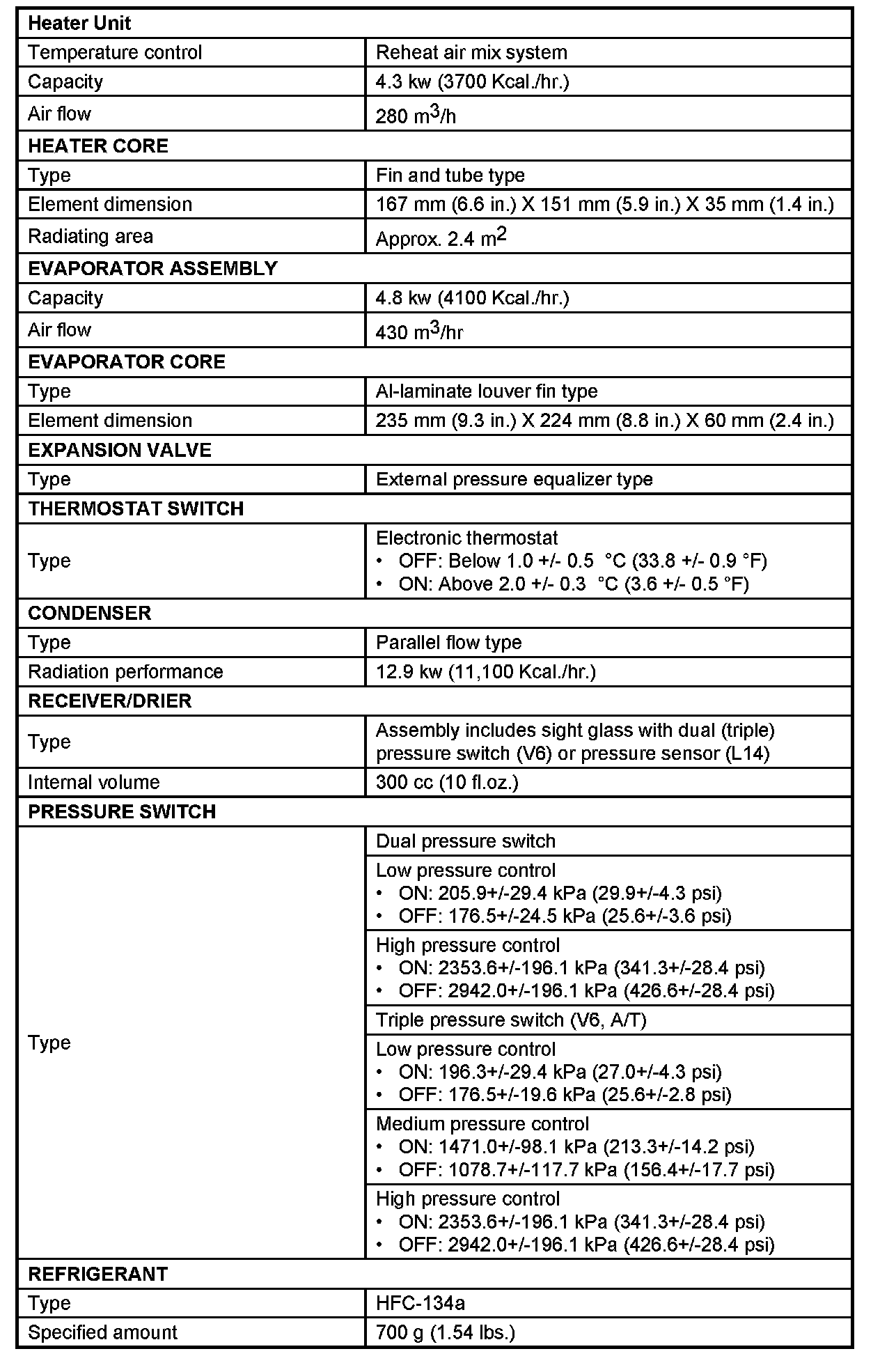 Pressure, Vacuum and Temperature Specifications