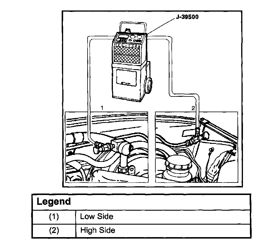 Recycle the refrigerant recovered by J-39500 (ACR4:HFC-134a Refrigerant Recovery/Recycling/Recharging/System) or equivalent.