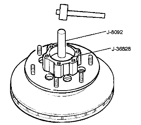 Install the outer race by driving it into the hub by using installer J-36828 and grip J-8092.