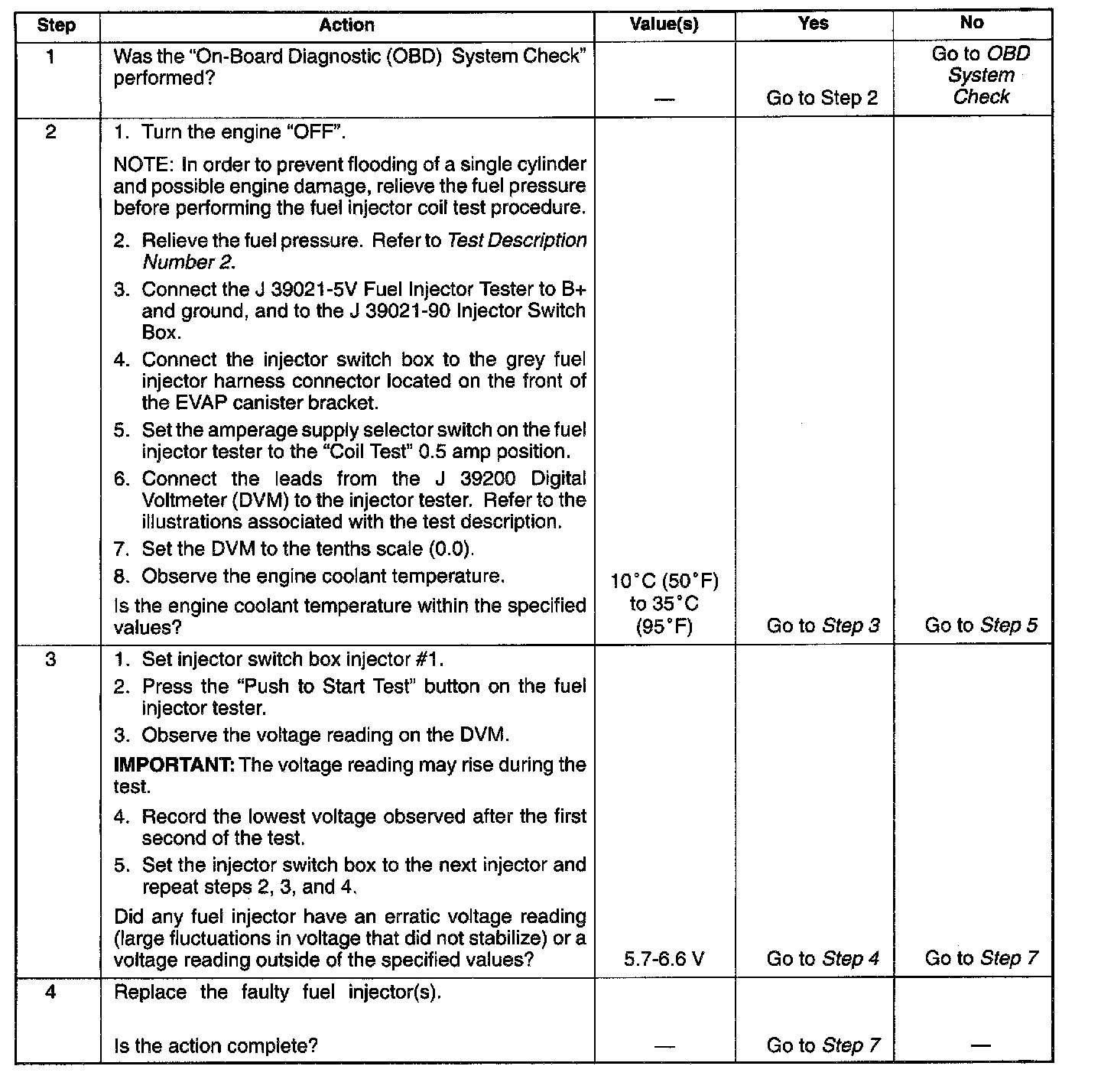 Fuel Injector Coil Test Procedure and Fuel Injector Balance Test ProcedureSteps 1 - 4: