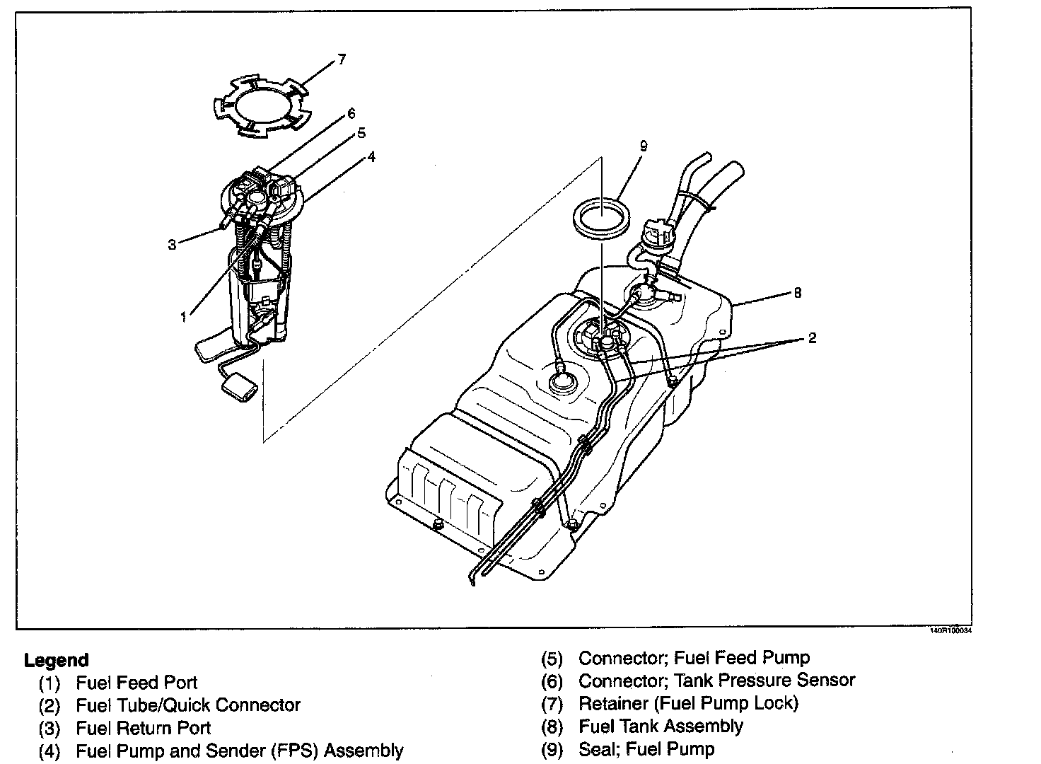 1. Install FPS assembly (4) with retainer (7) and new seal; fuel pump (9) by J-39763.