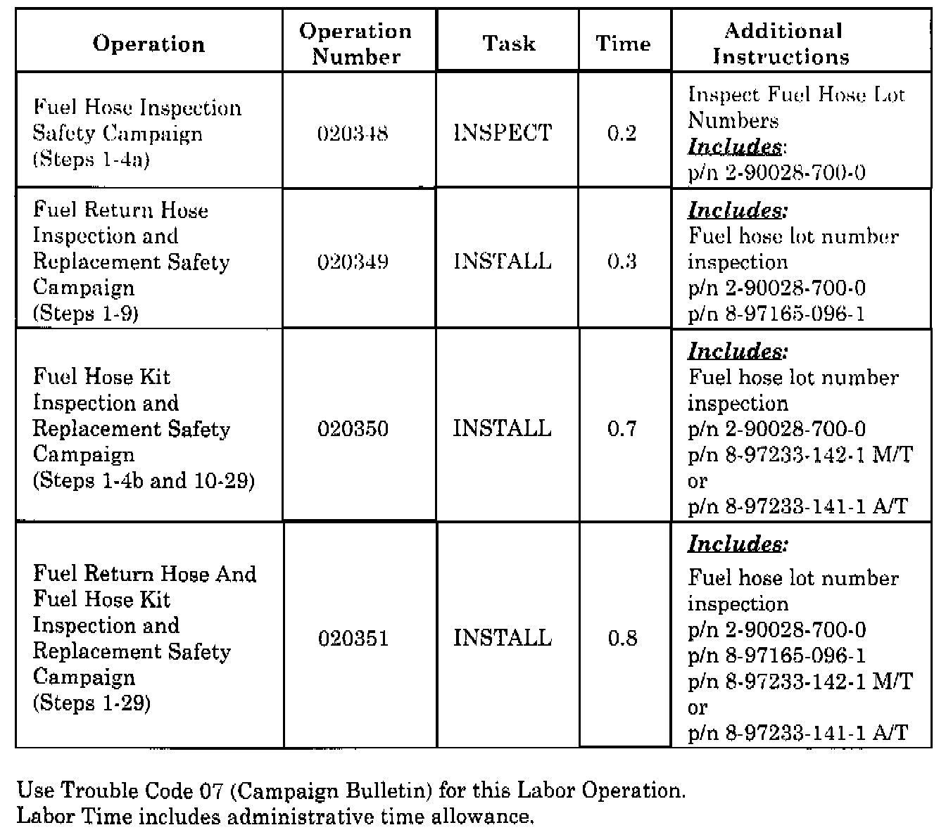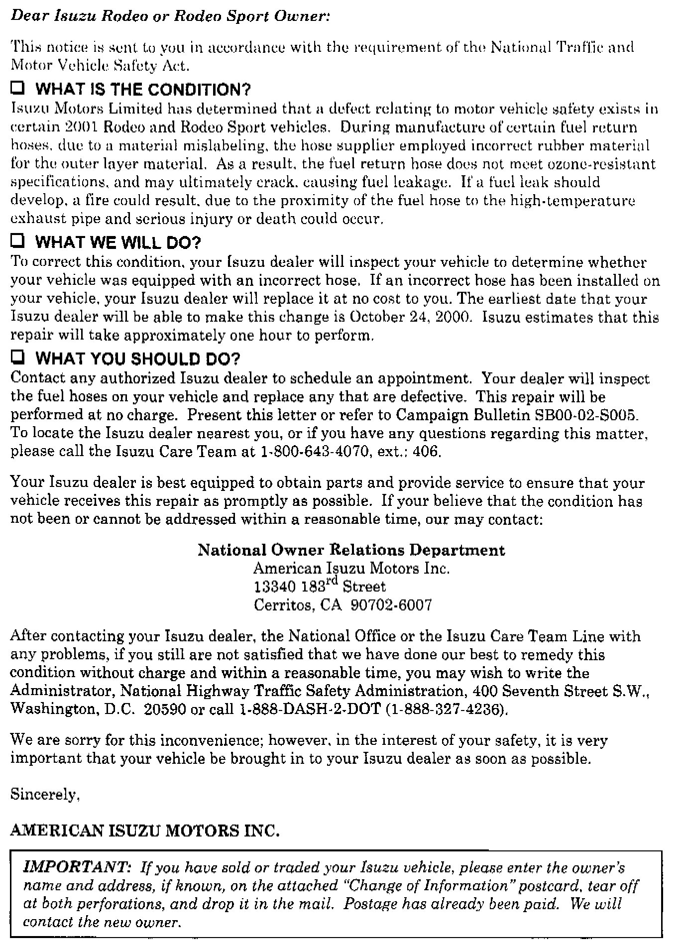 2001 RODEO and RODEO SPORT FUEL HOSE SAFETY CAMPAIGN 00V-298