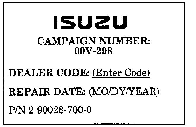 Isuzu dealers must service all affected vehicles at no charge to the owner, regardless of mileage, age of vehicle, or ownership.
