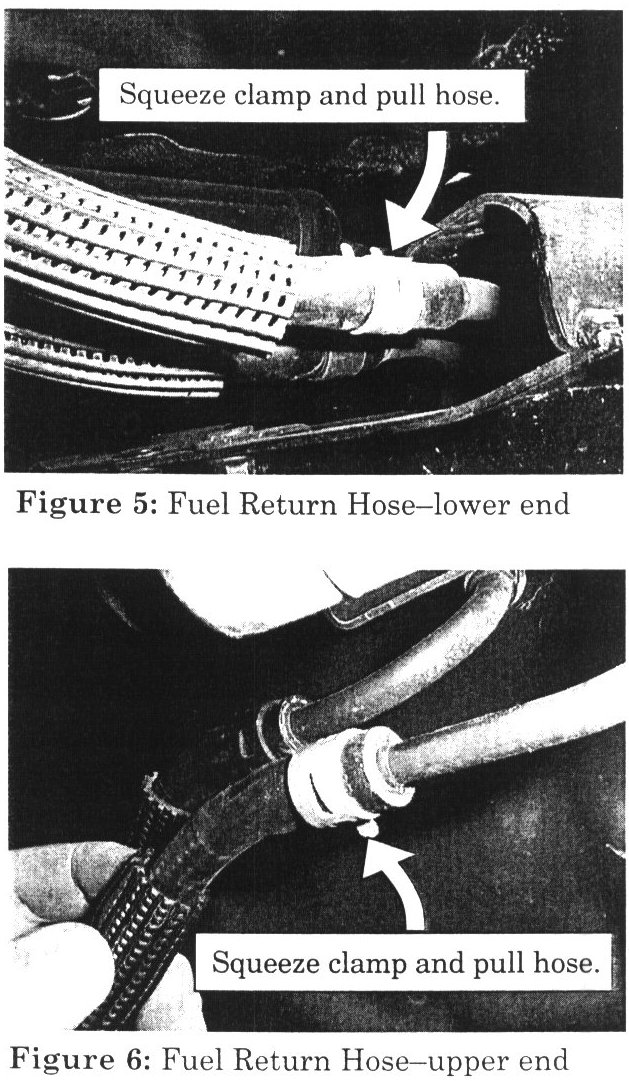 6. Remove Fuel Return Hose from fuel lines (Figures 1, 5, and 6).