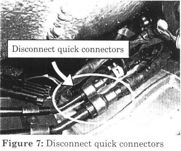 10. Disconnect the Fuel Hose Kit quick connectors at passenger side of transmission. (Figure 7)