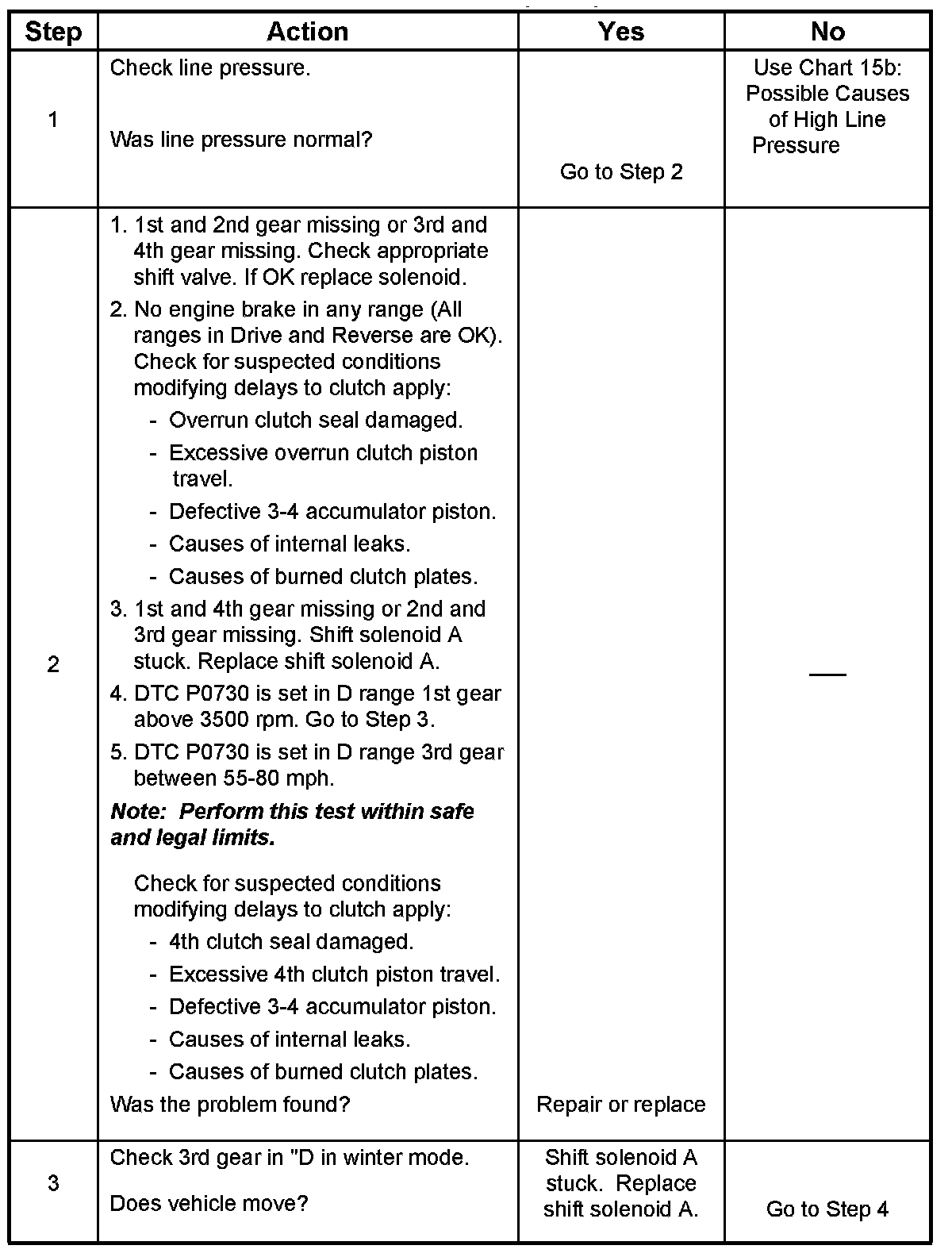 Chart 6: Diagnostic Trouble Code (DTC) P0730