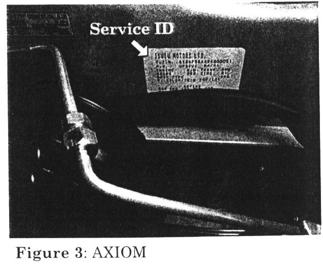 The 3-digit Isuzu option code is printed on the Service ID Information Plate (mounted under the hood), on the bulkhead at the rear of the engine compartment for all ISUZU models listed above. (Figures 1, 2, 3, and 4)
