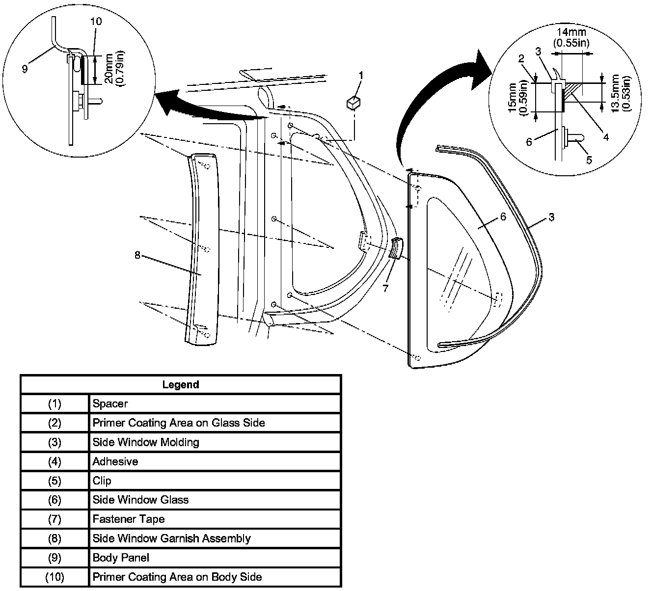 4. Remove the side window glass.