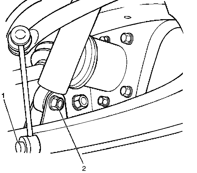 11. Remove the lower bolt and nut (2) of the shock absorber.