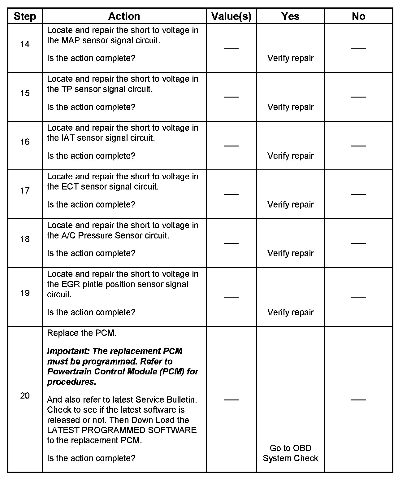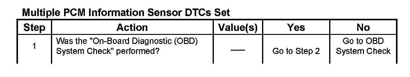 A short to voltage in one of the sensor input circuits may cause one or more of the following DTCs to be set: