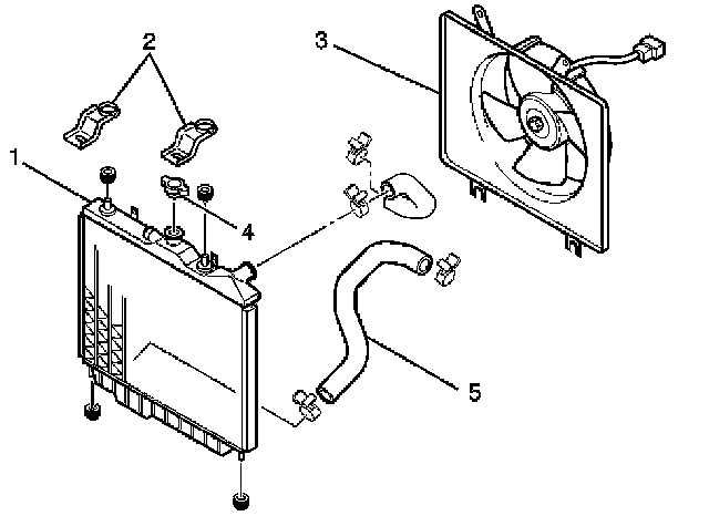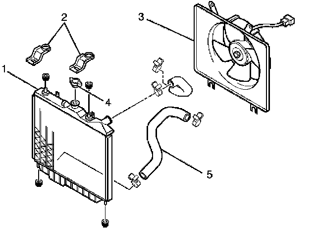 2. Install radiator assembly with hose, taking care not to damage the radiator core.