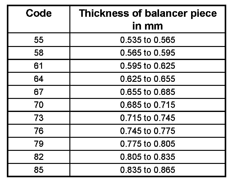 Example for selection of balancer piece: The installed balancer piece with the code "70" gave a tooth backlash of 0.08 mm (0.0031 inch).