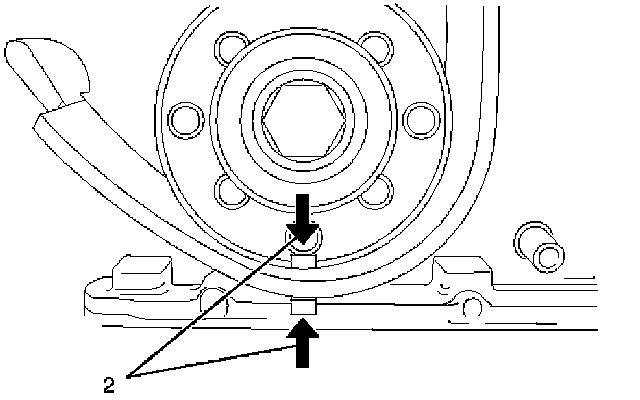 1. Turn crankshaft in engine rotational direction to alignment mark (2) 1st cylinder "TDC".