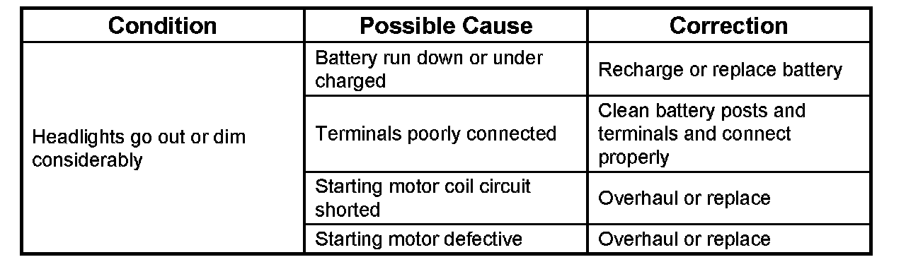 1. Starting Motor Does Not Turn Over