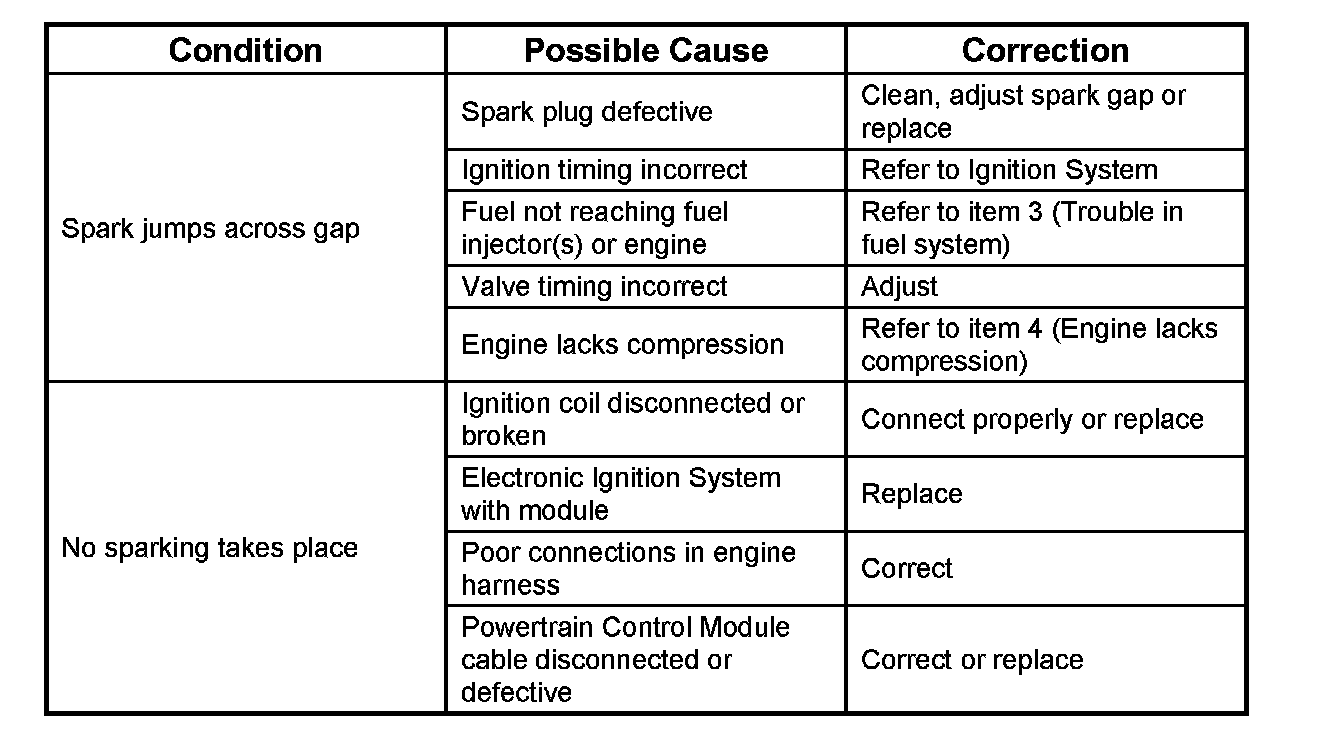 2. Ignition Trouble - Starting Motor Turns Over But Engine Does Not Start