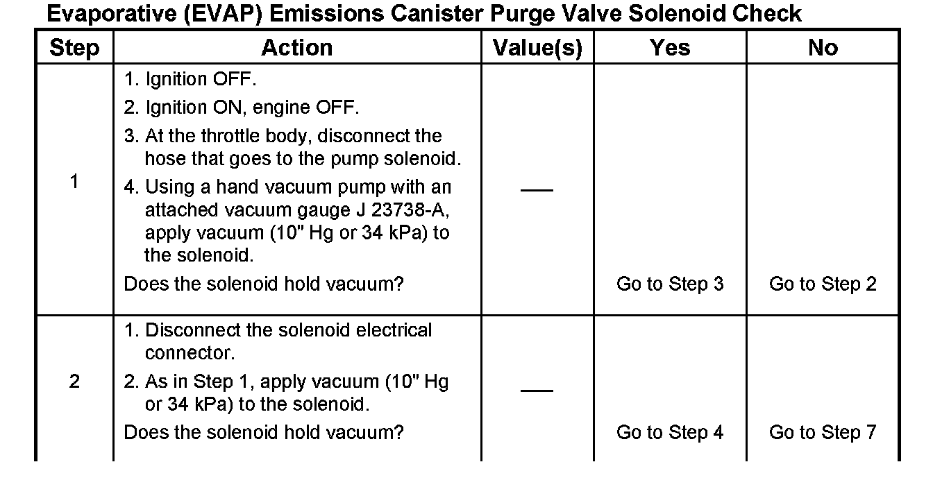 Evaporative (EVAP) Emissions Canister Purge Valve Solenoid CheckEvaporative (EVAP) Emissions Canister Purge Valve Solenoid Check: