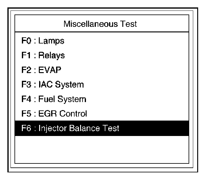 4. Select F6: Injector Balance Test in the Miscellaneous Test.
