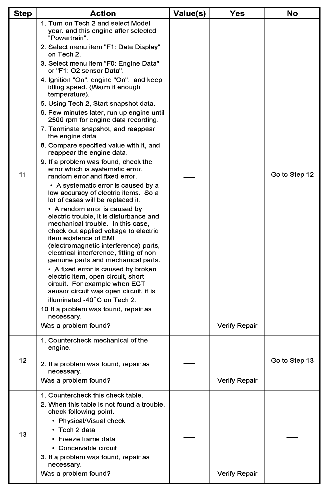 - Snapshot the engine data at the Tech 2. and observe variation of the any data, faulty data, fixed data and etc.
