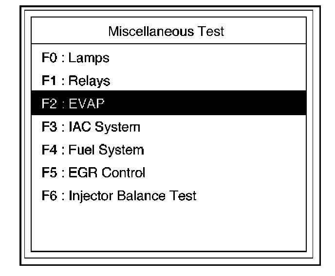 4. Select F2:EVAP Test in the Miscellaneous Test.