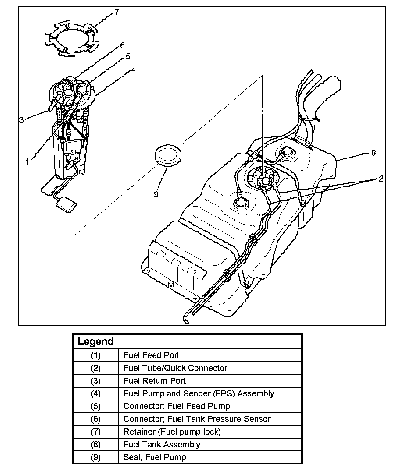 1. Install FPS assembly (4) with the retainer (7) and new seal; fuel pump (9) by J-39763.