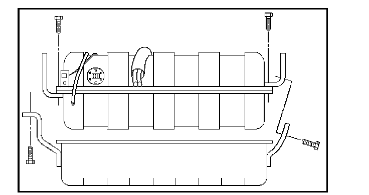 5. Lift the fuel pump to its position and secure it with four mounting bolts. Make sure that all hoses and fuel lines are out of way between the fuel tank and the fuel tank bracket. Tighten the fuel tank retaining bolts to 36 N.m (27 lb ft).
