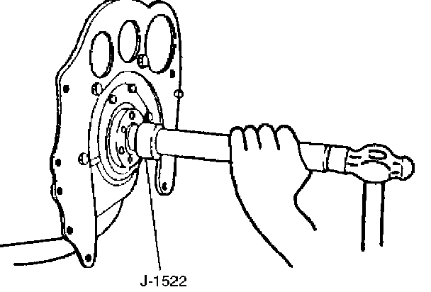 2. Use installer J-1522 to install crankshaft bearing (6).