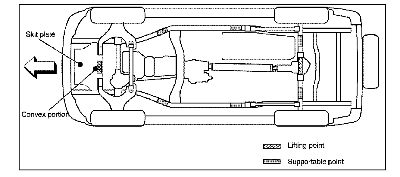 * When using a floor jack, lift on the Convex portion of the skid plate.
