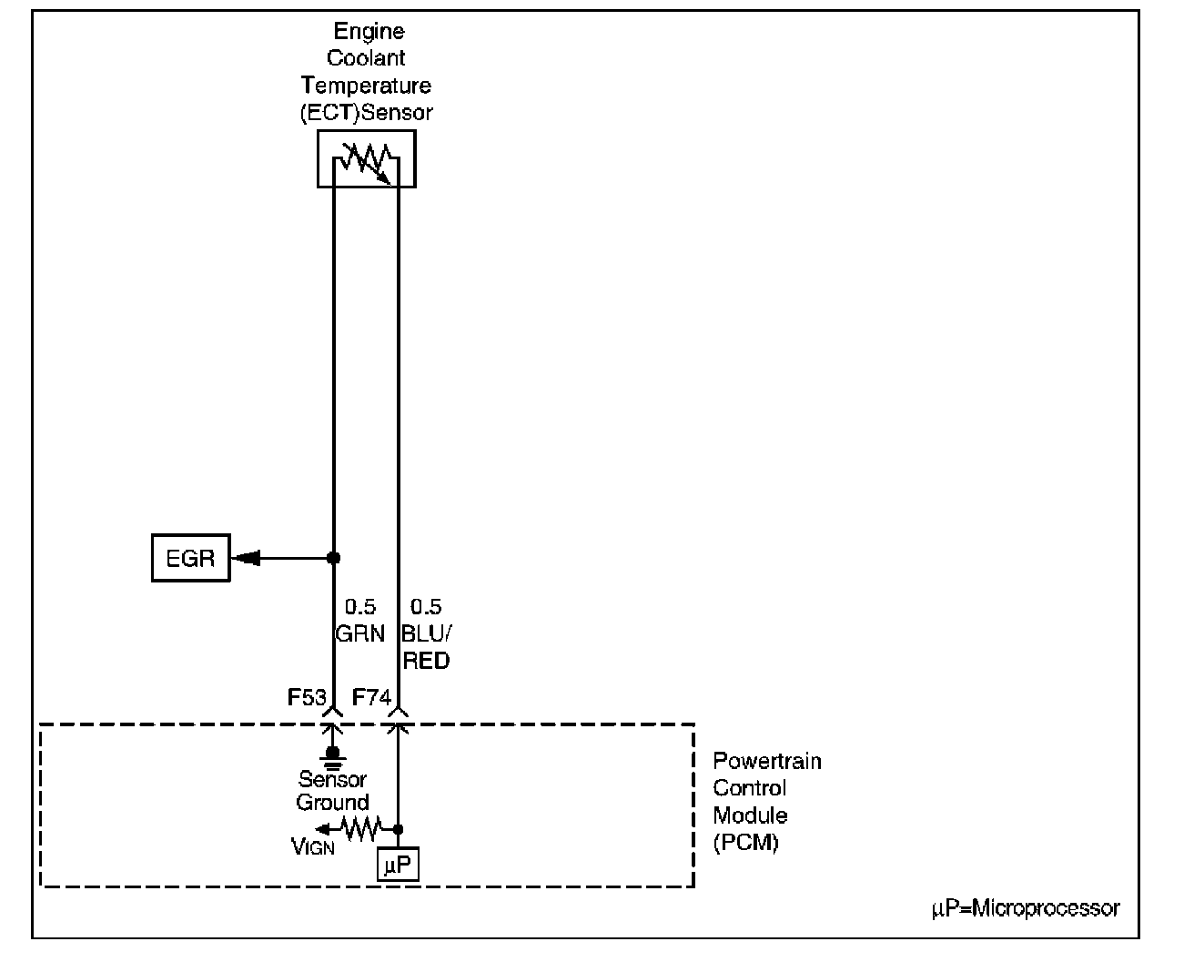 - The engine coolant temperature (ECT) sensor thermistor mounted on a coolant crossover pipe at the front of the engine.