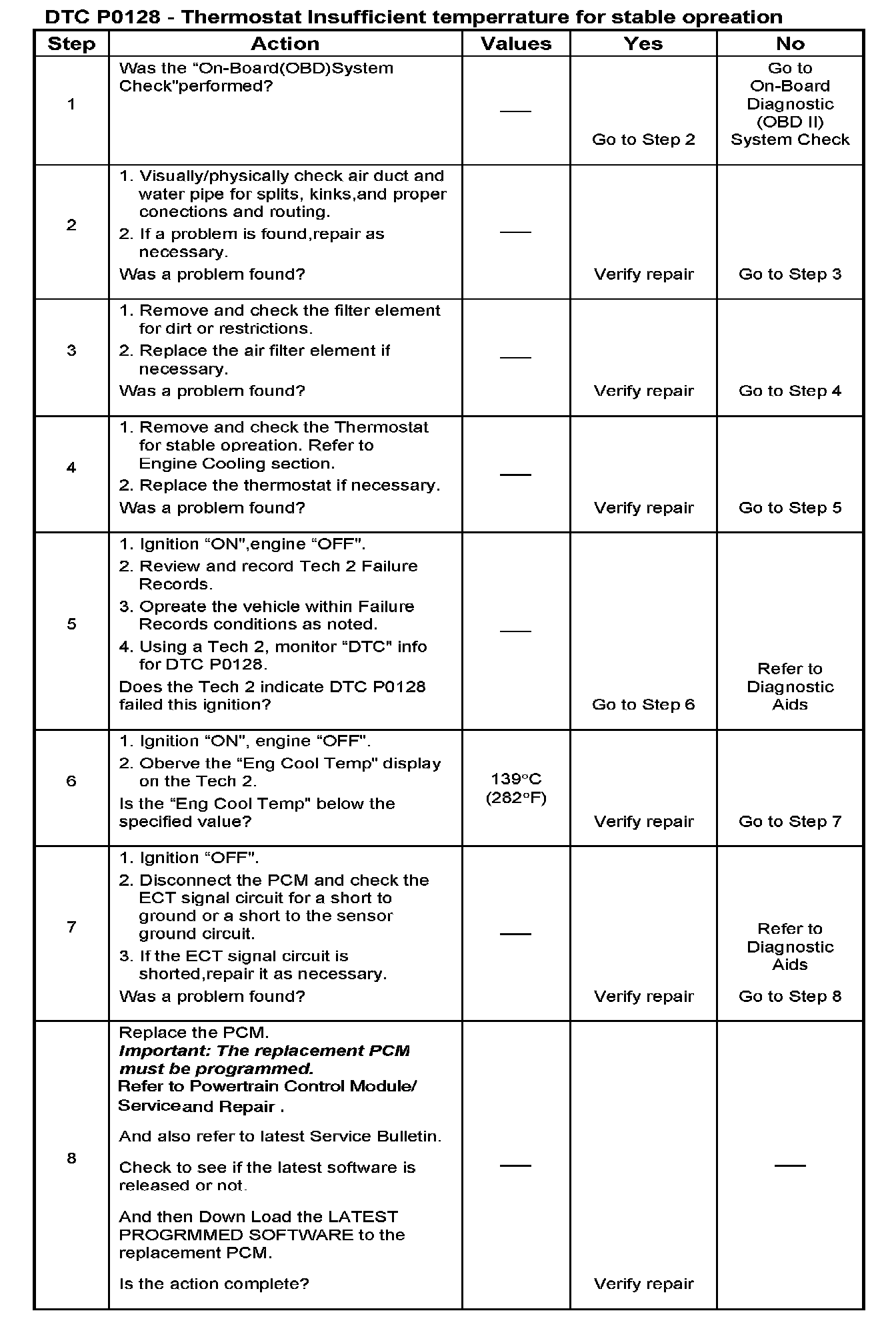 If DTC P0128 cannot be duplicated, the information included in the Failure Records data can be useful in determined vehicle mileage since the DTC was last set.
