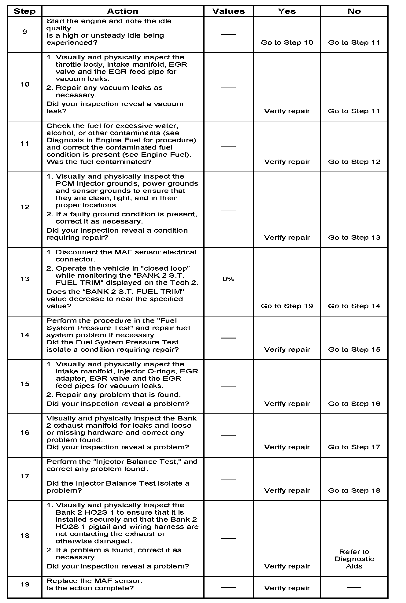 - None of the following DTCs are set: idle system, EGR, HO2S, (response, transition, open, low volts, no activity), MAF, TP sensor, MAP, IAT, canister purge, EVAP, injector circuit, or misfire.