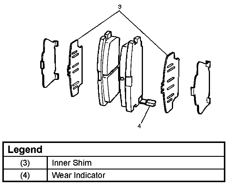 Note: If a squealing noise occurs from the rear brake while driving, check the pad wear indicator plate. If the indicator plate contacts the rotor, the disc pad assembly should be replaced.