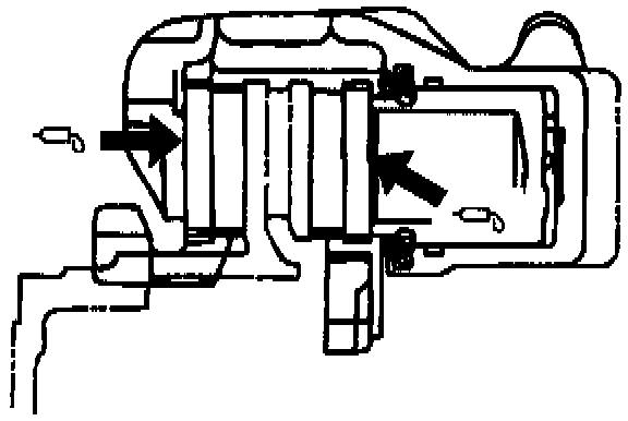 3. Install caliper assembly, use adjustable pliers to bottom the piston into the caliper bore. Be careful not to damage the piston dust boot and do not damage the flexible hose by twisting or pulling it.